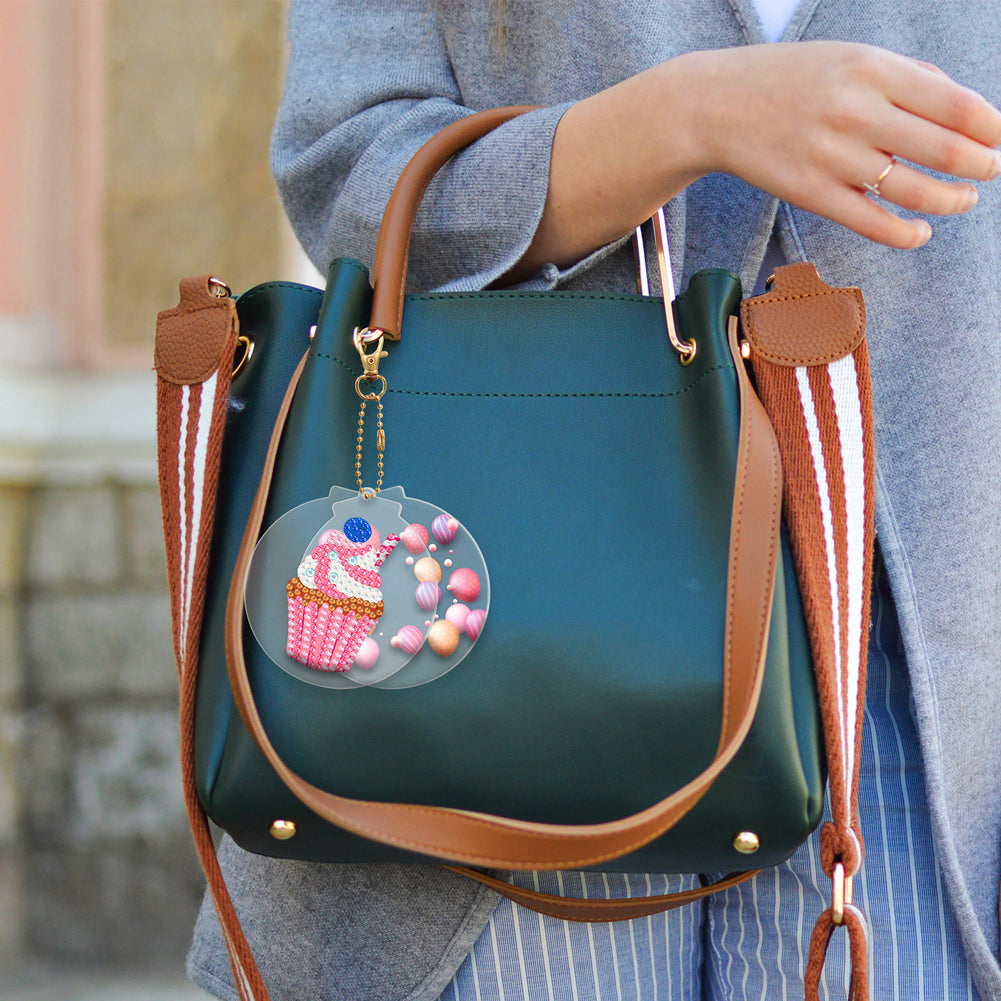2 pièces 5D diamant peinture porte-clés Kits bricolage rond porte-clés femme sac pendentif bijoux mosaïque décoration à la main filles cadeau