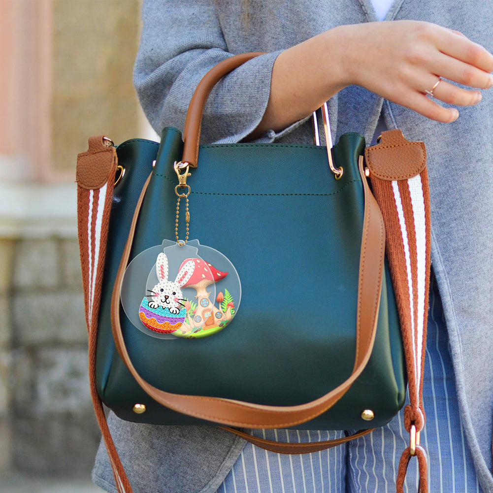 2 pièces 5D diamant peinture porte-clés Kits bricolage rond porte-clés femme sac pendentif bijoux mosaïque décoration à la main filles cadeau