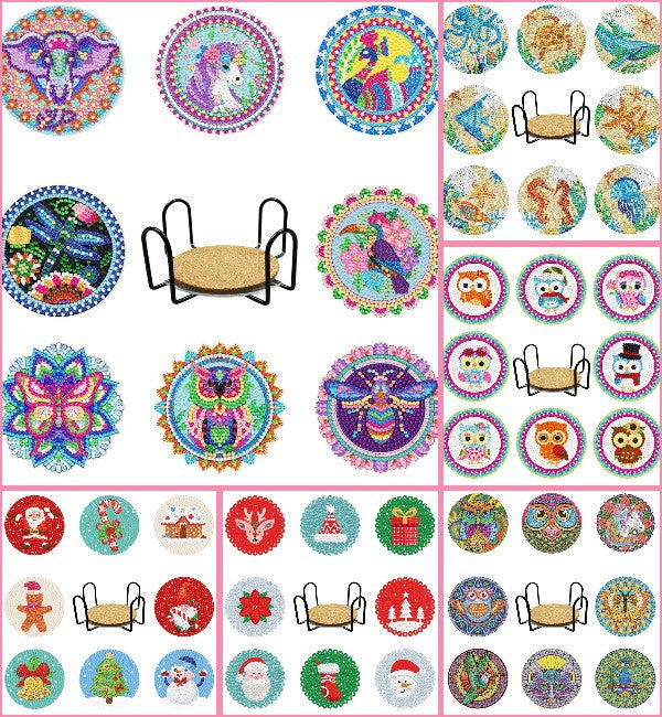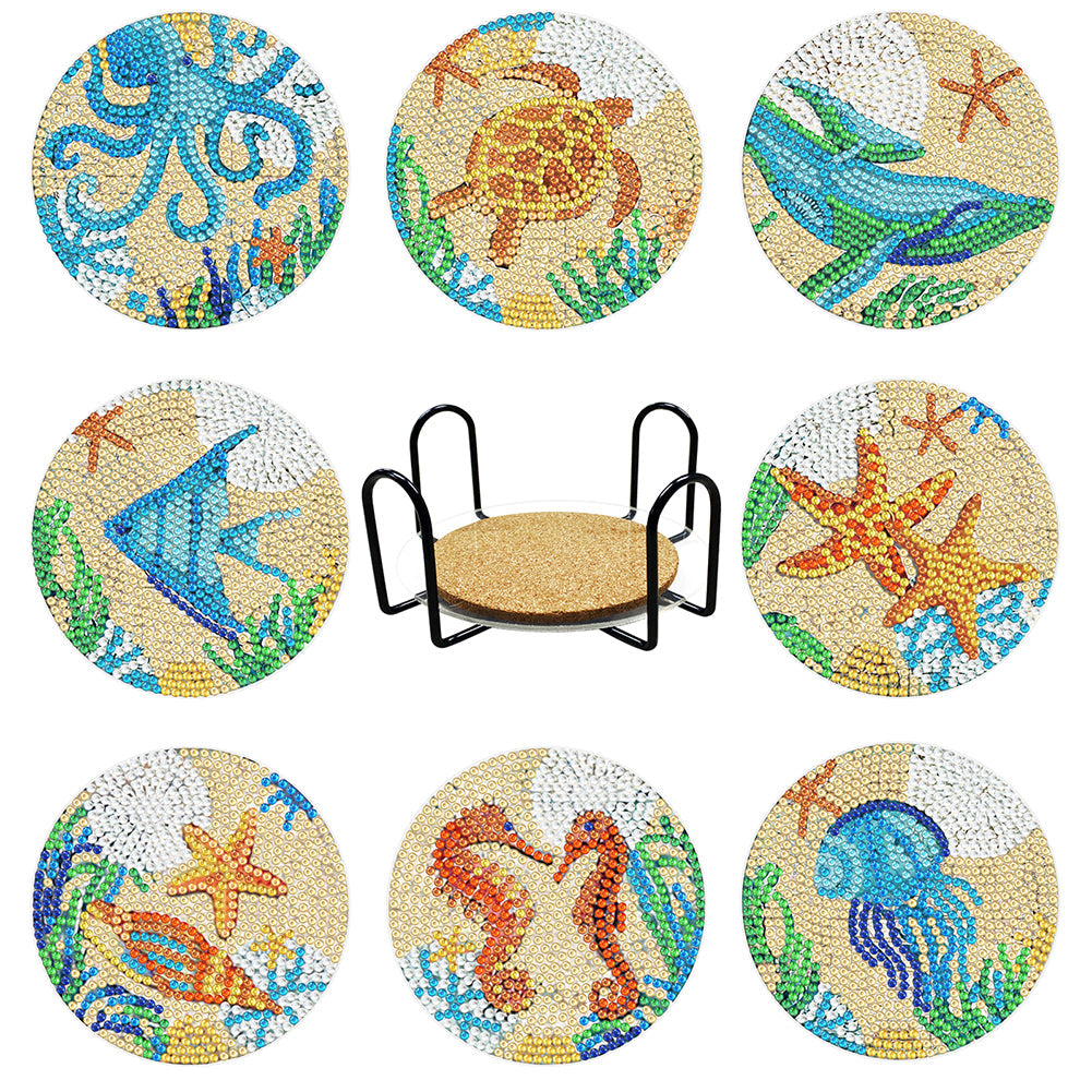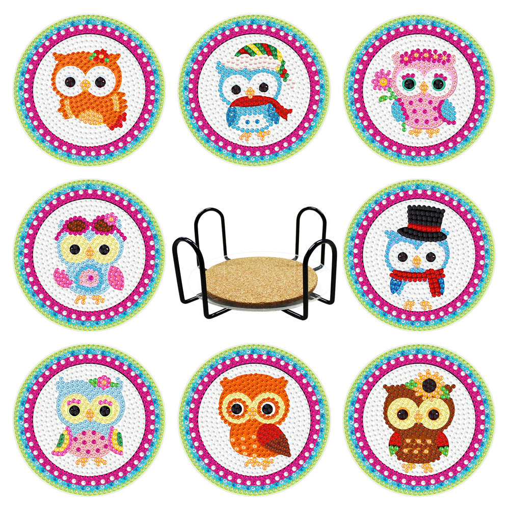8pcs/set +1 rack de stockage-Animal-Bois Diamond Coaster