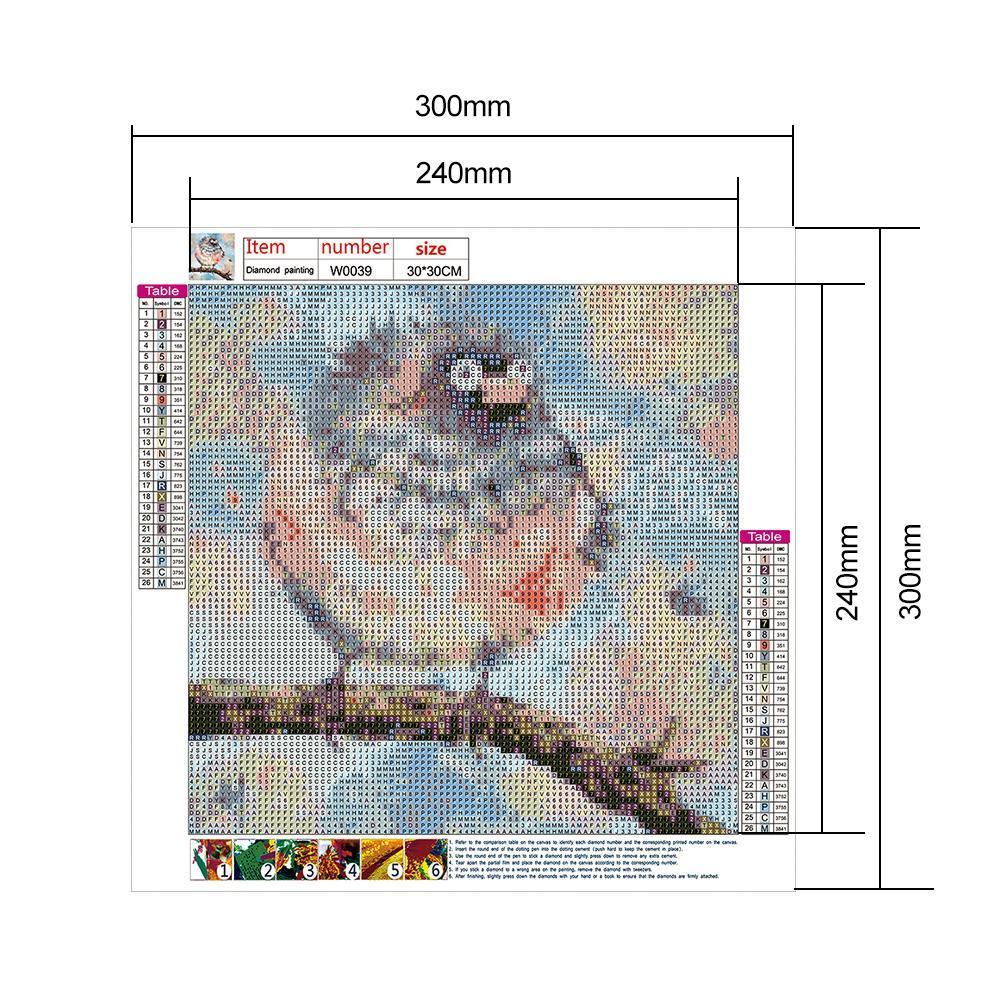 Oiseau - diamant rond complet - 30x30cm