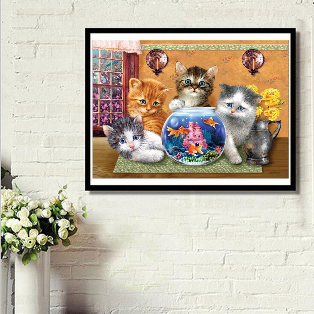 5D bricolage plein perceuse diamant peinture chats poisson Tank Cross Stitch broderie mosaïque Craft Kit mur Art couture ensemble ronde strass Home Decor cadeau