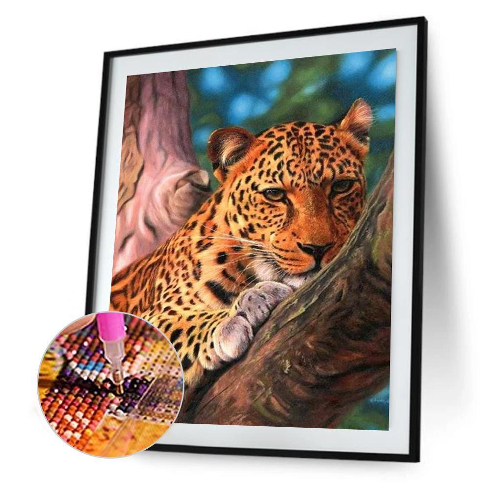 5D DIY Full Drill Diamond Painting Climbing Leopard Cross Stitch Embroidery Mosaic Craft Needlework Set Home Decoration