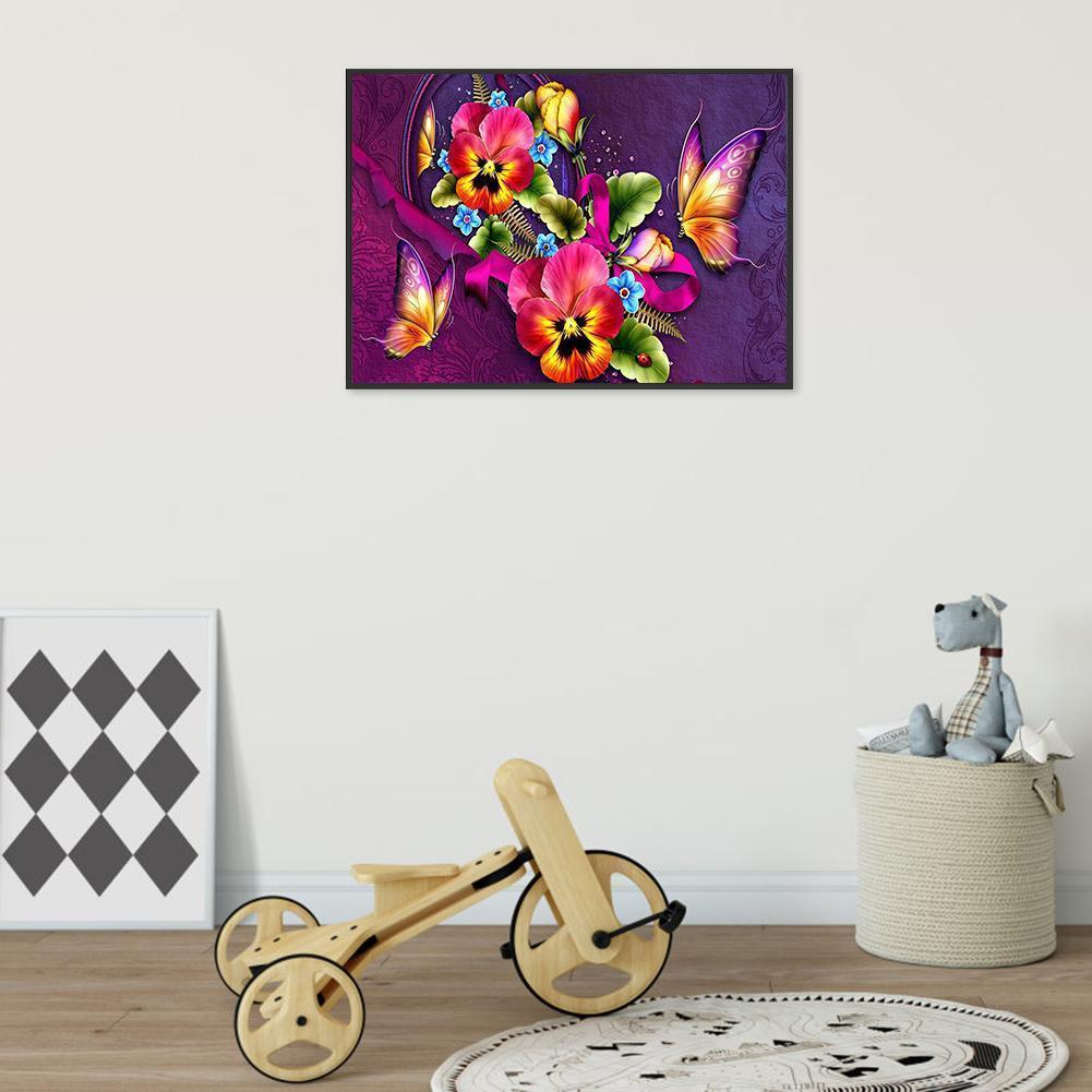 Fleurs de couleur - diamant rond complet - 40x30cm