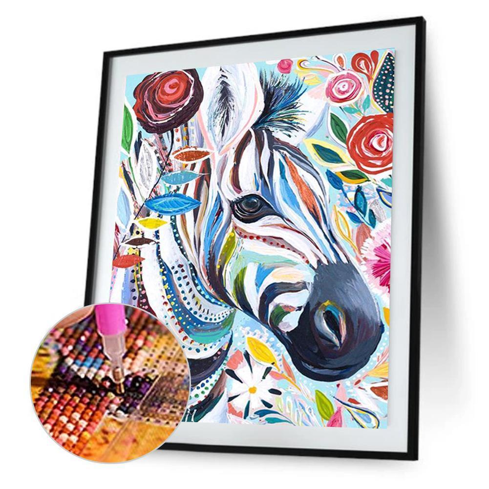 5D DIY Full Drill Diamond Painting Colorful Zebra Cross Stitch Mosaic Craft Needlework Set Home Decoration