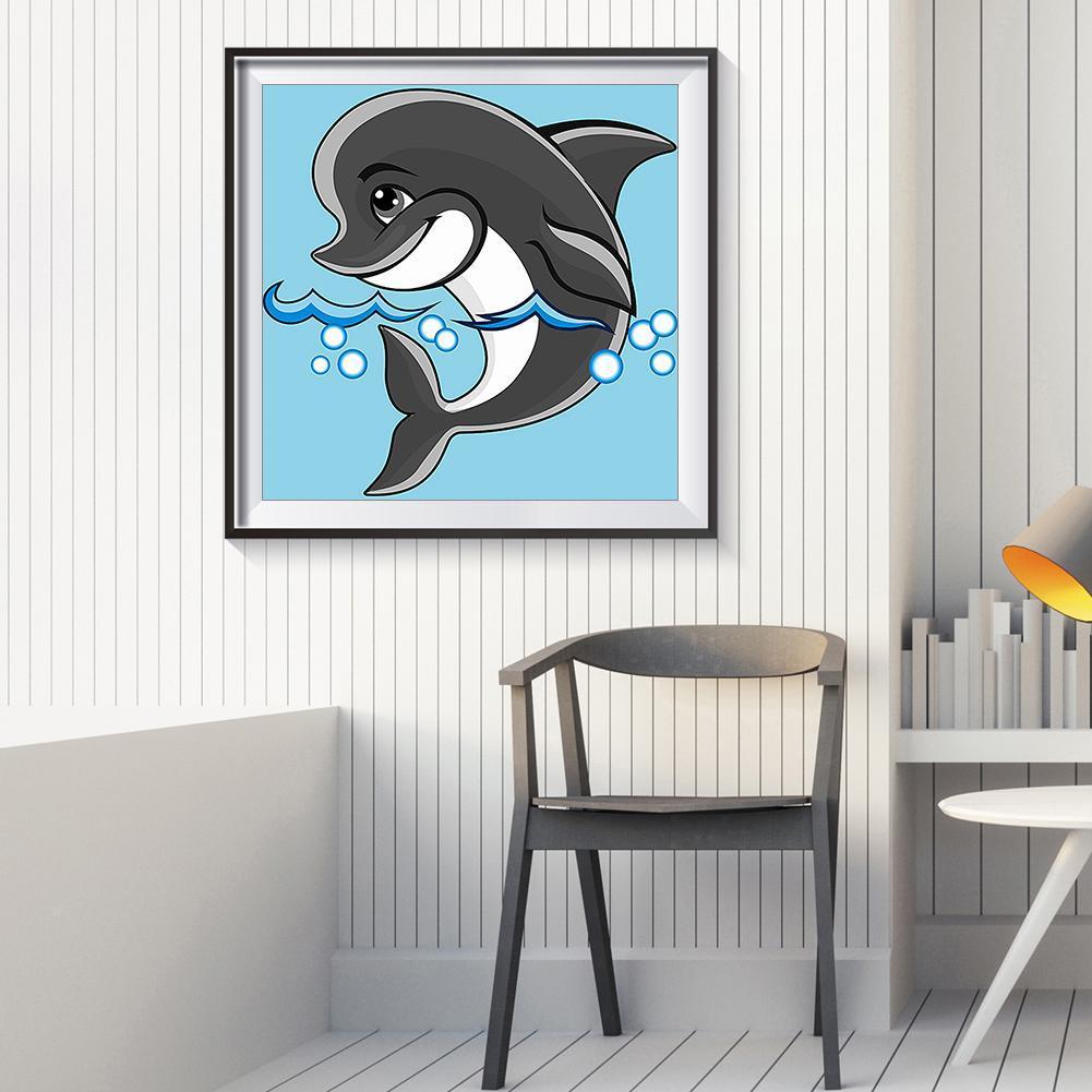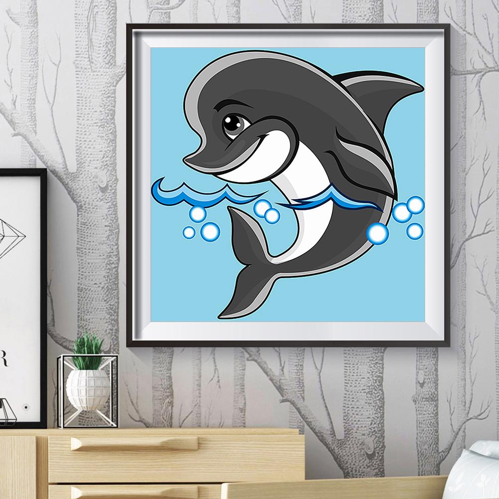 5D DIY Full Drill Diamond Painting Cute Dolphin Cross Stitch Embroidery Mosaic Kit Needlework Set Home Decoration