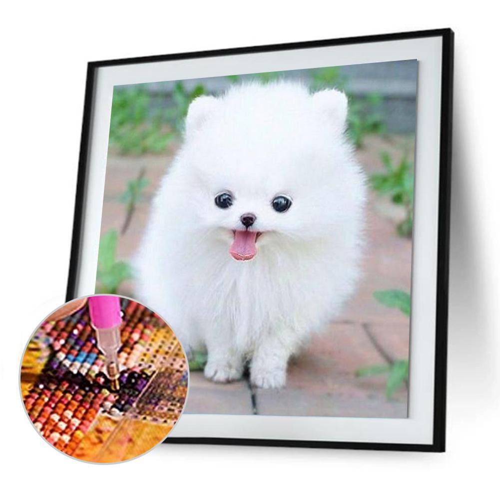 5D DIY Full Drill Round Diamond Painting Cute White Dog Cross Stitch Embroidery Mosaic Kit Home Decor Needlework