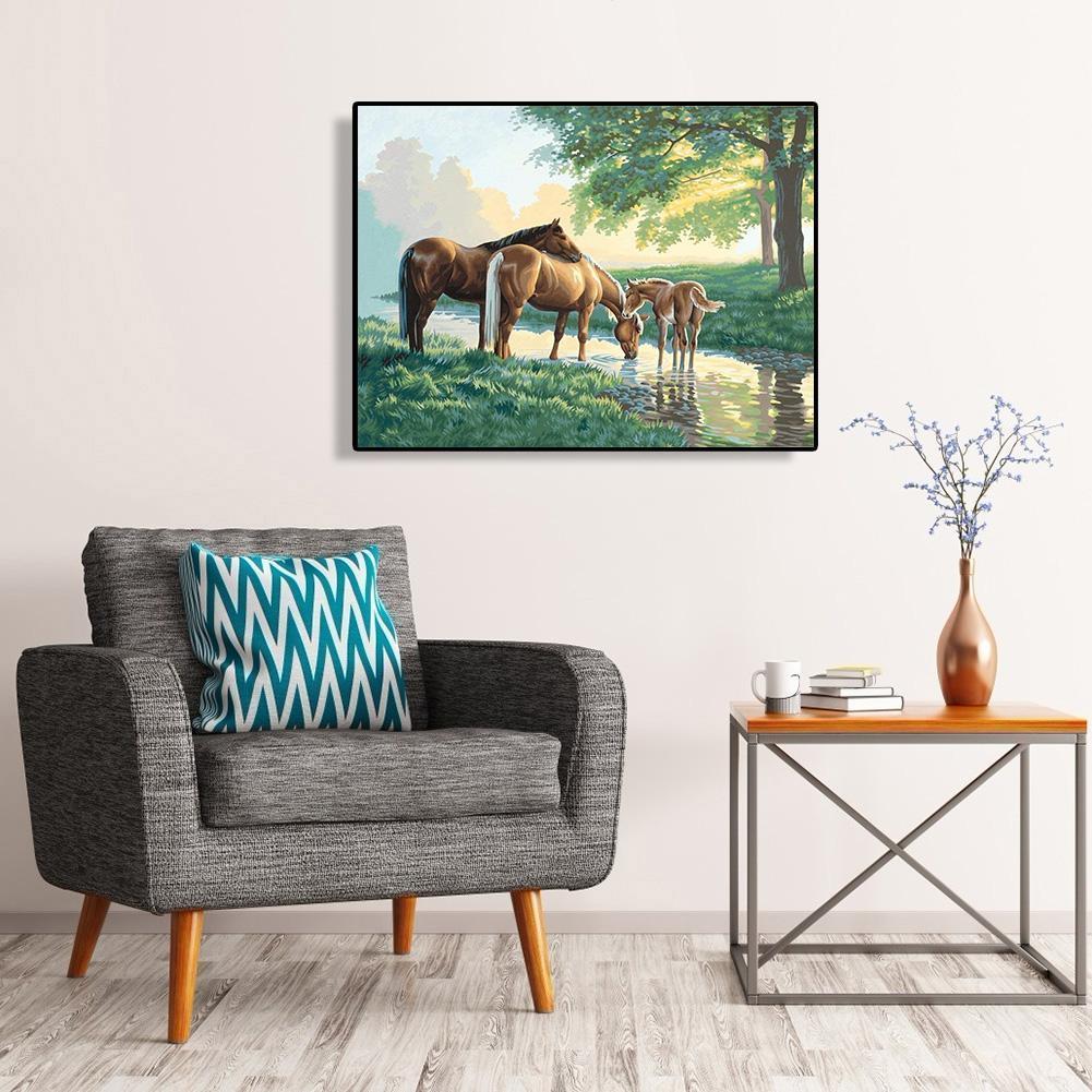 5D DIY Full Drill Diamond Painting Drinking Horse Cross Stitch Embroidery Mosaic Kit Needlework Set Home Decoration