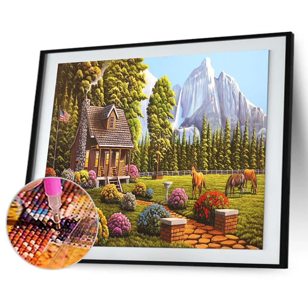 5D DIY Full Drill Diamond Painting Easeful House Cross Stitch Embroidery Mosaic Kit Needlework Set Home Decoration