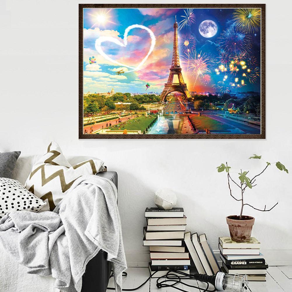 Cadeau de décor pour le bricolage plein perceuse diamant peinture Eiffel Tower Cross Stitch broderie mosaïque Craft Kit mur Art couture ensemble ronde strass accueil 5D