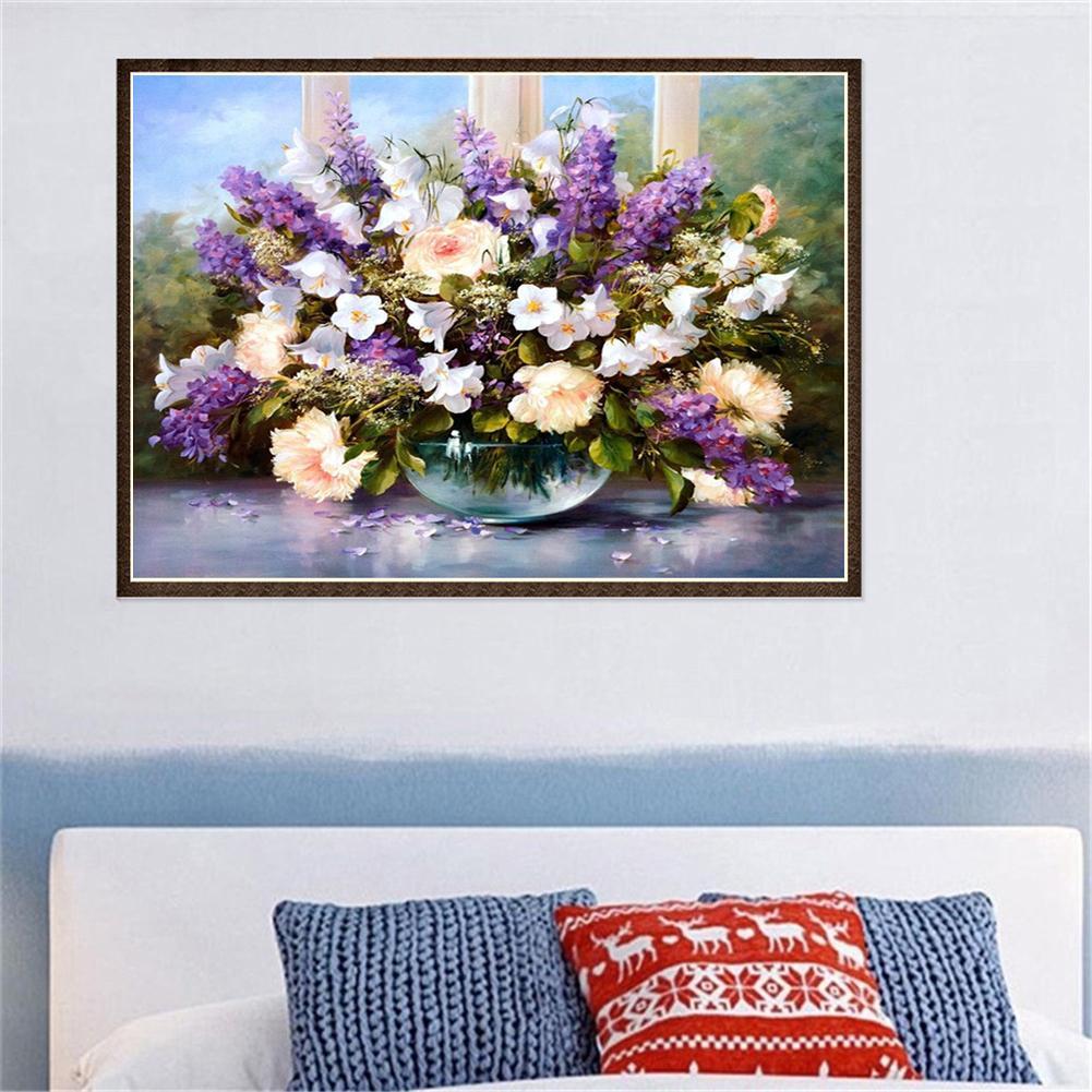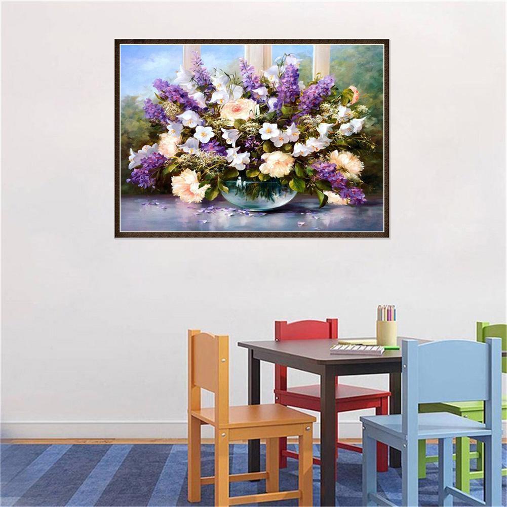 Decoration murale bricolage Flowerpot Diamond broderie peinture pleine foret Cross Stitch ronde strass mosaïque Kits Accueil