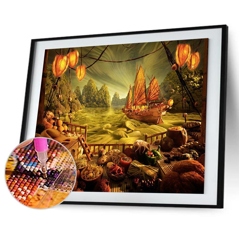 5D DIY Full Drill Diamond Painting Food Ship Cross Stitch Embroidery Mosaic Craft Needlework Set Home Decoration