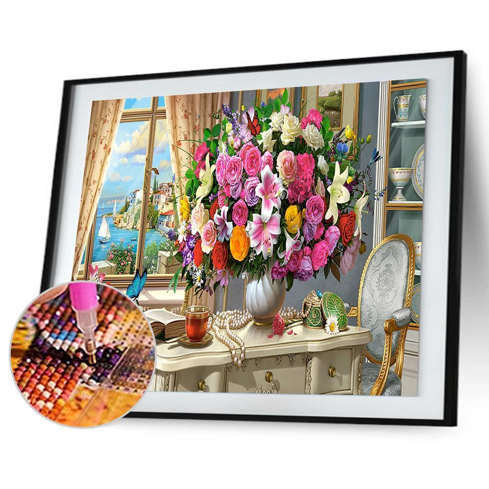 5D DIY Full Drill Round Diamond Painting Colorful Flowers Cross Stitch Embroidery Mosaic Kit Home Decor Needlework