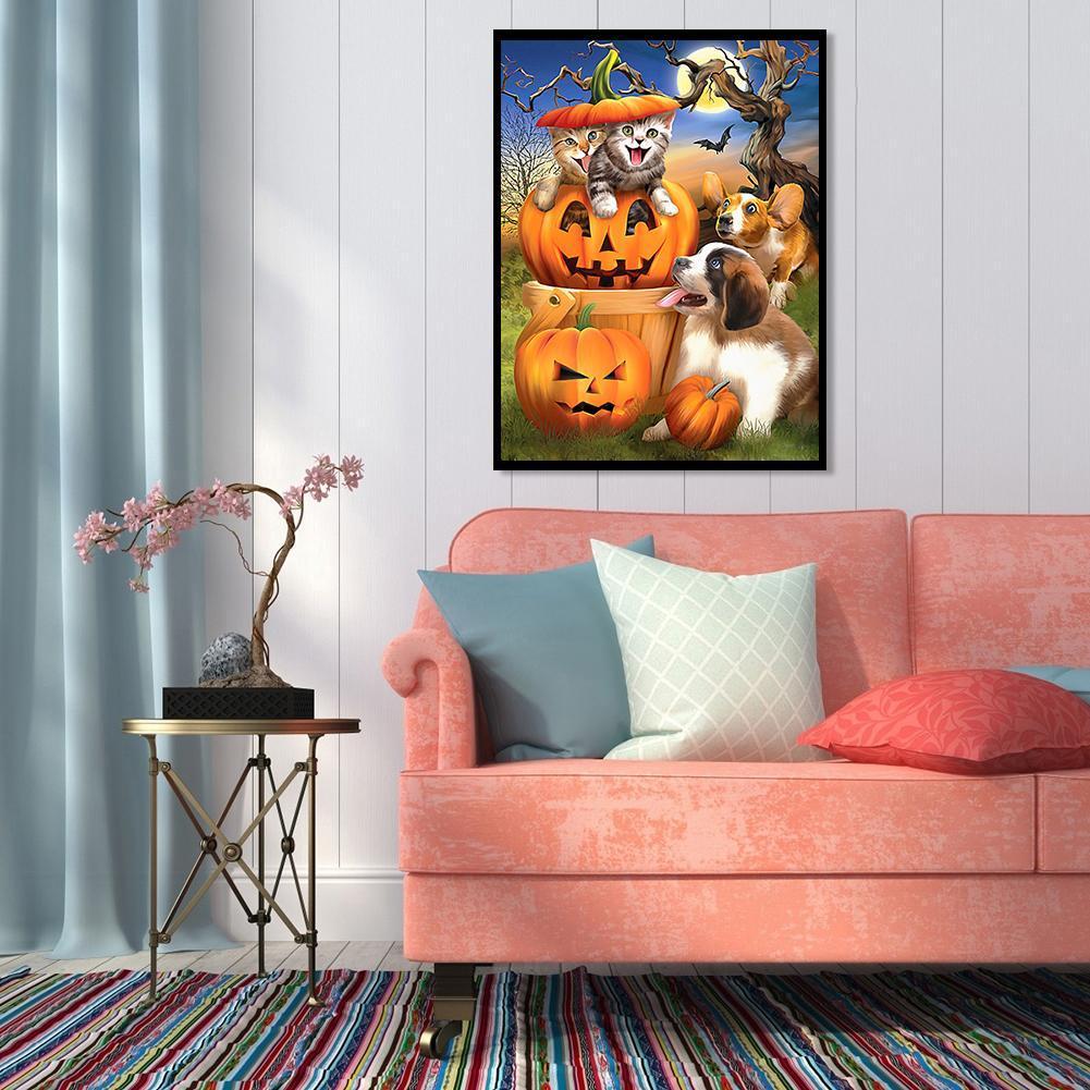 Halloween Cat Dog 5D DIY Diamond Painting Broderie Full Round Drill Cross Stitch Crafts Canvas Wall Art Pictures Décoration