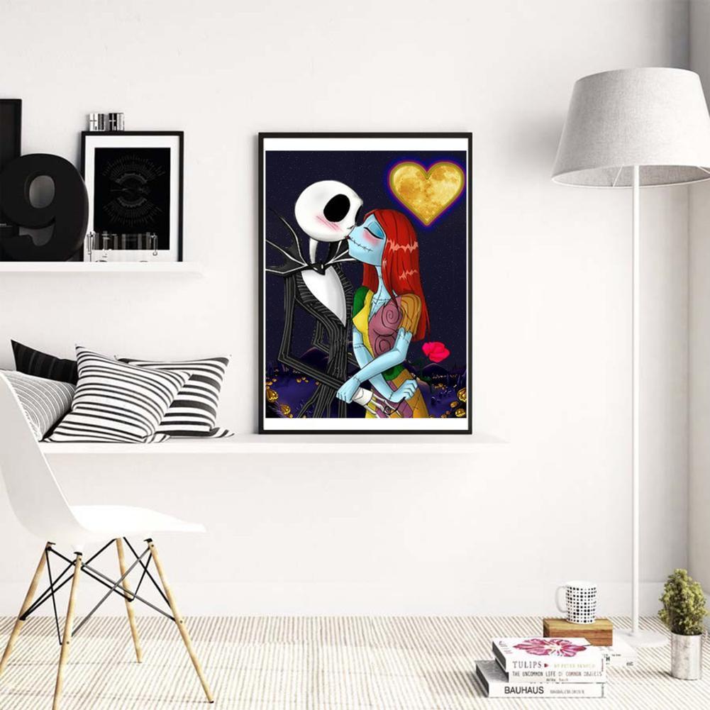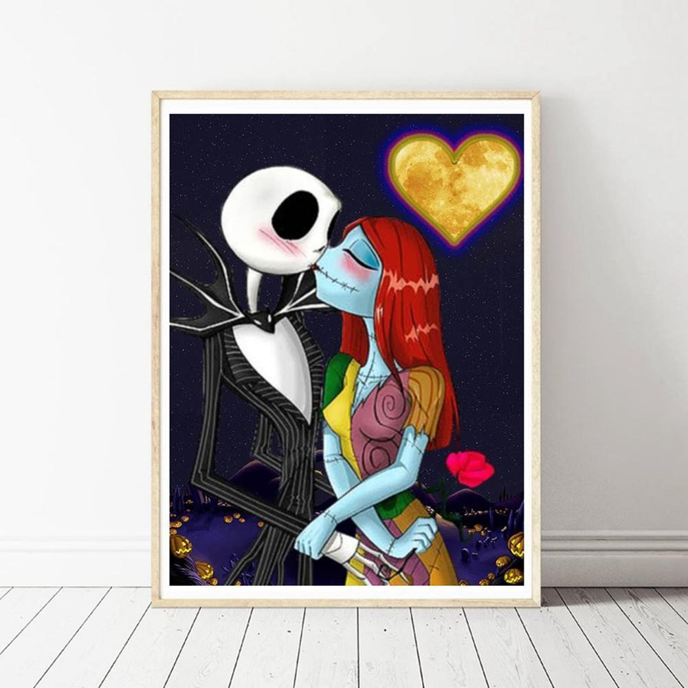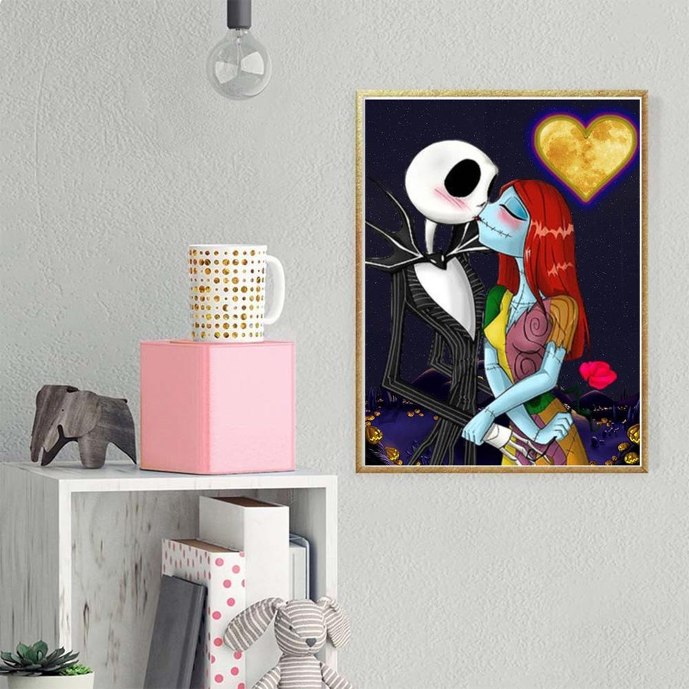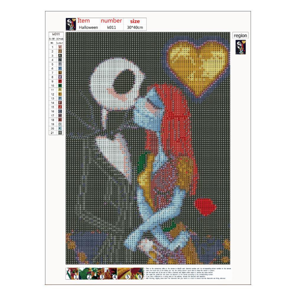 Cadeau de décor pour le bricolage plein perceuse peinture Halloween Skull amoureux Cross Stitch broderie mosaïque Kit couture ensemble ronde strass Art Craft Accueil 5D