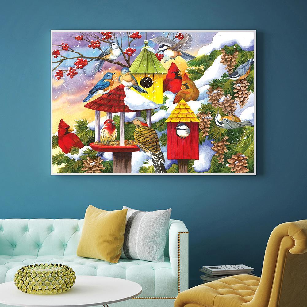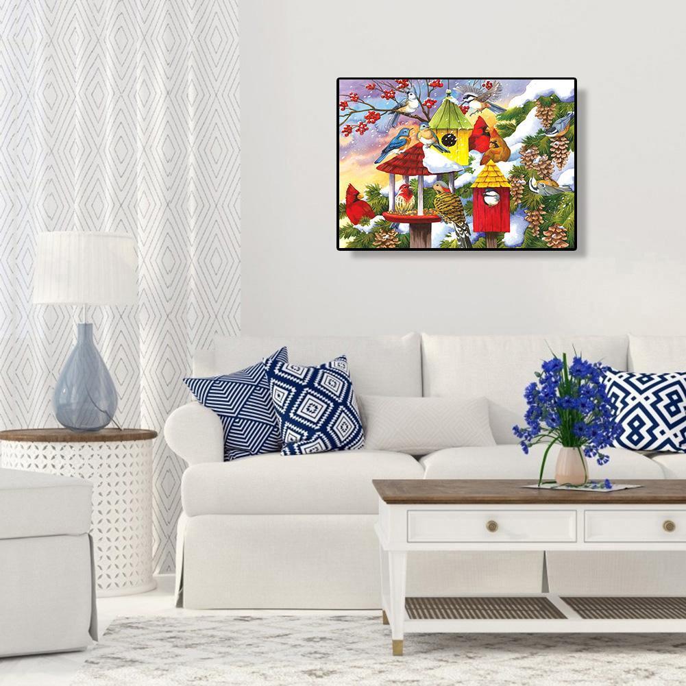 5D DIY Full Drill Diamond Painting Happy Bird House Cross Stitch Embroidery Mosaic Kit Needlework Set Home Decoration