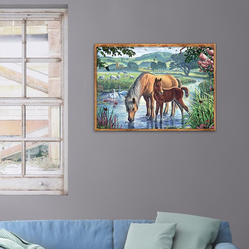 5D DIY Full Drill Diamond Painting Horse Drinking Cross Stitch Embroidery Mosaic Kit Home Decoration