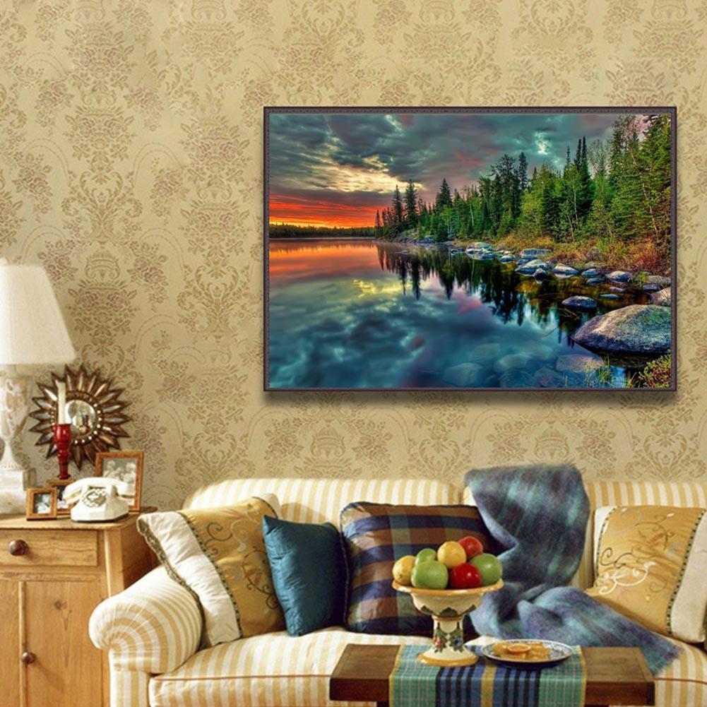 D 5 Diamond broderie peinture decoration murale bricolage Lake Forest Full perceuse Cross Stitch ronde strass mosaïque Kits Accueil
