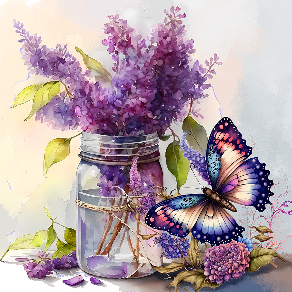Lavender Butterfly-Full Diamond Painting-30x30cm