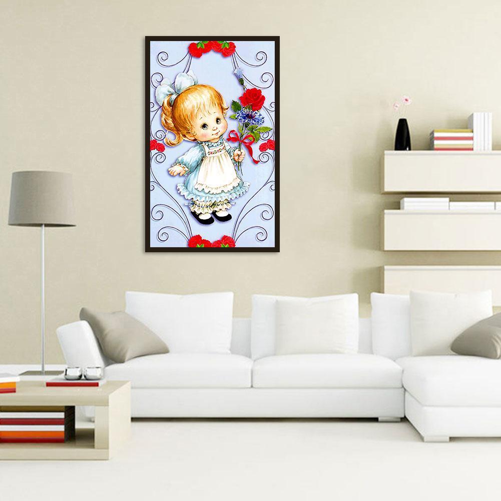 5D DIY Full Drill Diamond Painting Little Girl Cross Stitch Embroidery Mosaic Kit Needlework Set Home Decoration