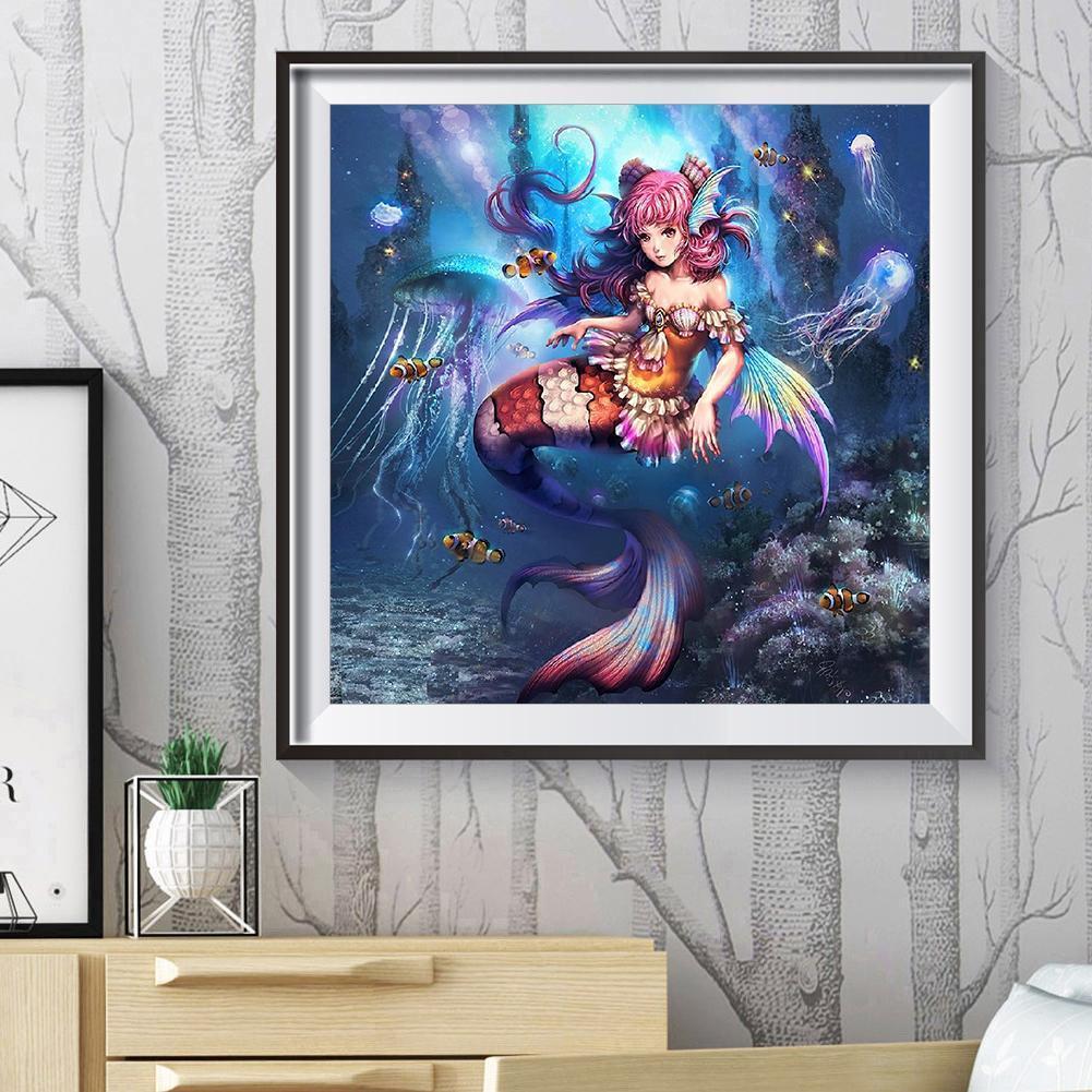 Sirène 5D DIY Full Round Drill Strassstone Diamond Painting Broderie Kits De broderie Aiguille Set Cross Stitch Mosaic Art Craft Home Decor Cadeau