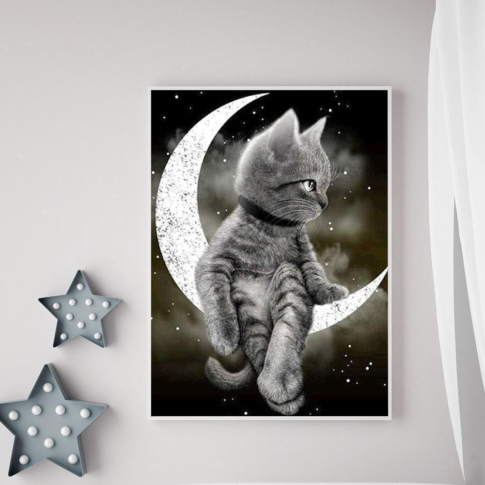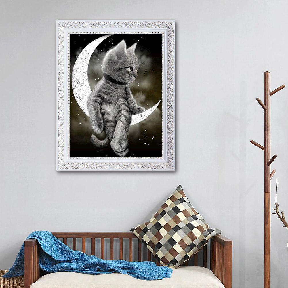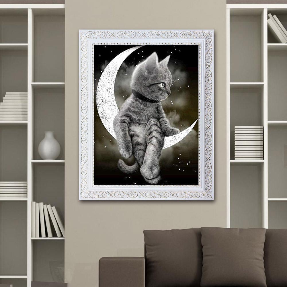 5D DIY Full Drill Diamond Painting Moon Cat Cross Stitch Broder Mosaic Kit Décoration