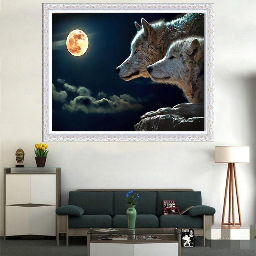 5D DIY Full Drill Diamond Painting Night Wolves Cross Stitch Embroidery Mosaic Craft Needlework Set Home Decoration