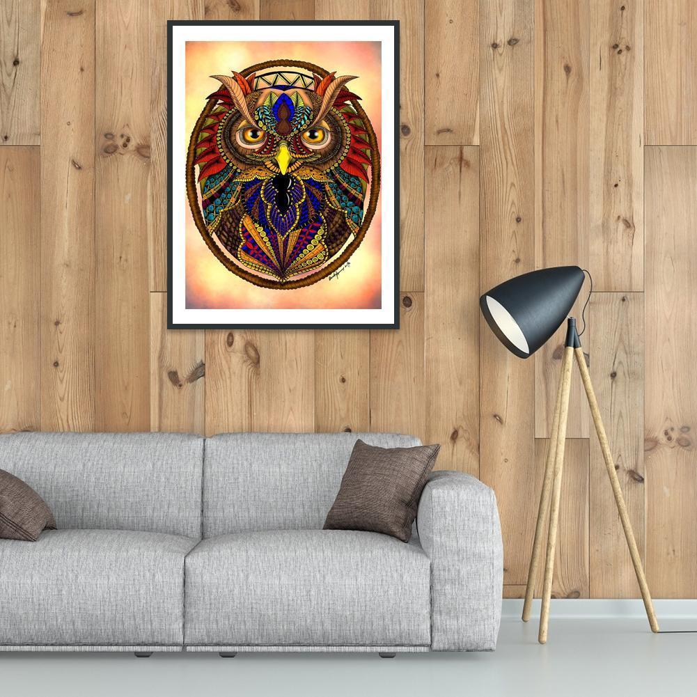 • Charger l'image dans la galerie, Hibou - diamant rond complet - 30x40cm
