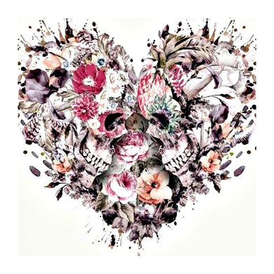 Coeur - crâne en forme - diamant rond complet - 25x25cm