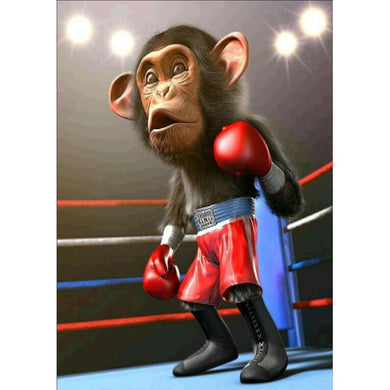 Singe boxeur - diamant rond complet - 40x30cm