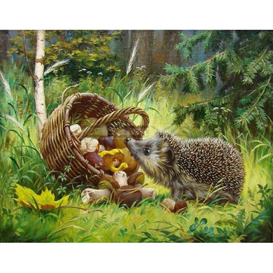 Hérisson mosaïque - diamant rond complet - 40x30cm