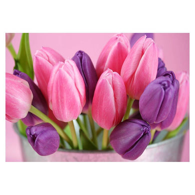 Fleurs roses - peinture en diamant complet - 40x30cm