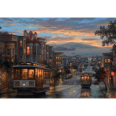 Rue tranquille de ville - diamant rond complet - 40x30cm