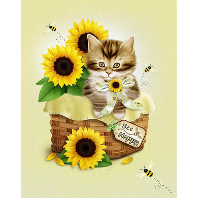 Tournesol de chat - diamant rond complet - 30x40cm