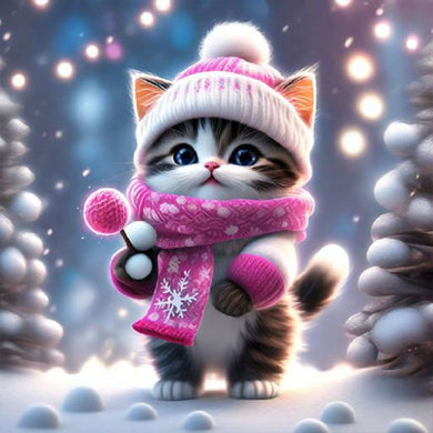 Snow Kitten-complet Round peinture au diamant-30x30cm
