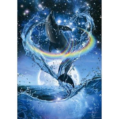 Ensembles de dauphins - diamant rond complet - 30x40cm