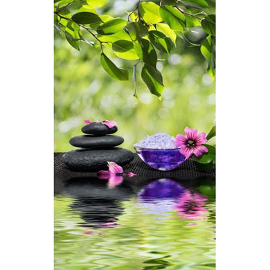 Lotus étang de poissons - diamant rond complet - 40x40cm