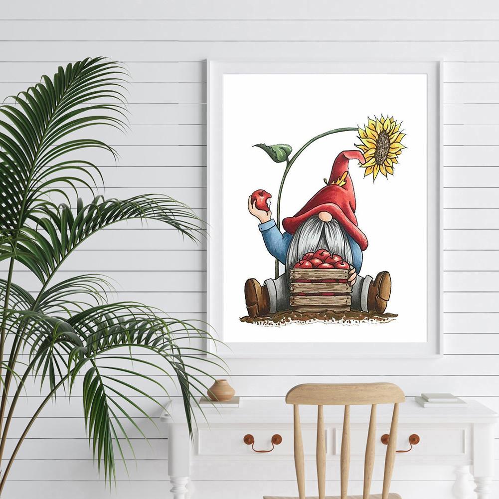5D DIY Full Drill Round Diamond Painting Cartoon Gnome Diamond Embroidery Mosaic Kit Home Decor for Bead Art Wall Gift