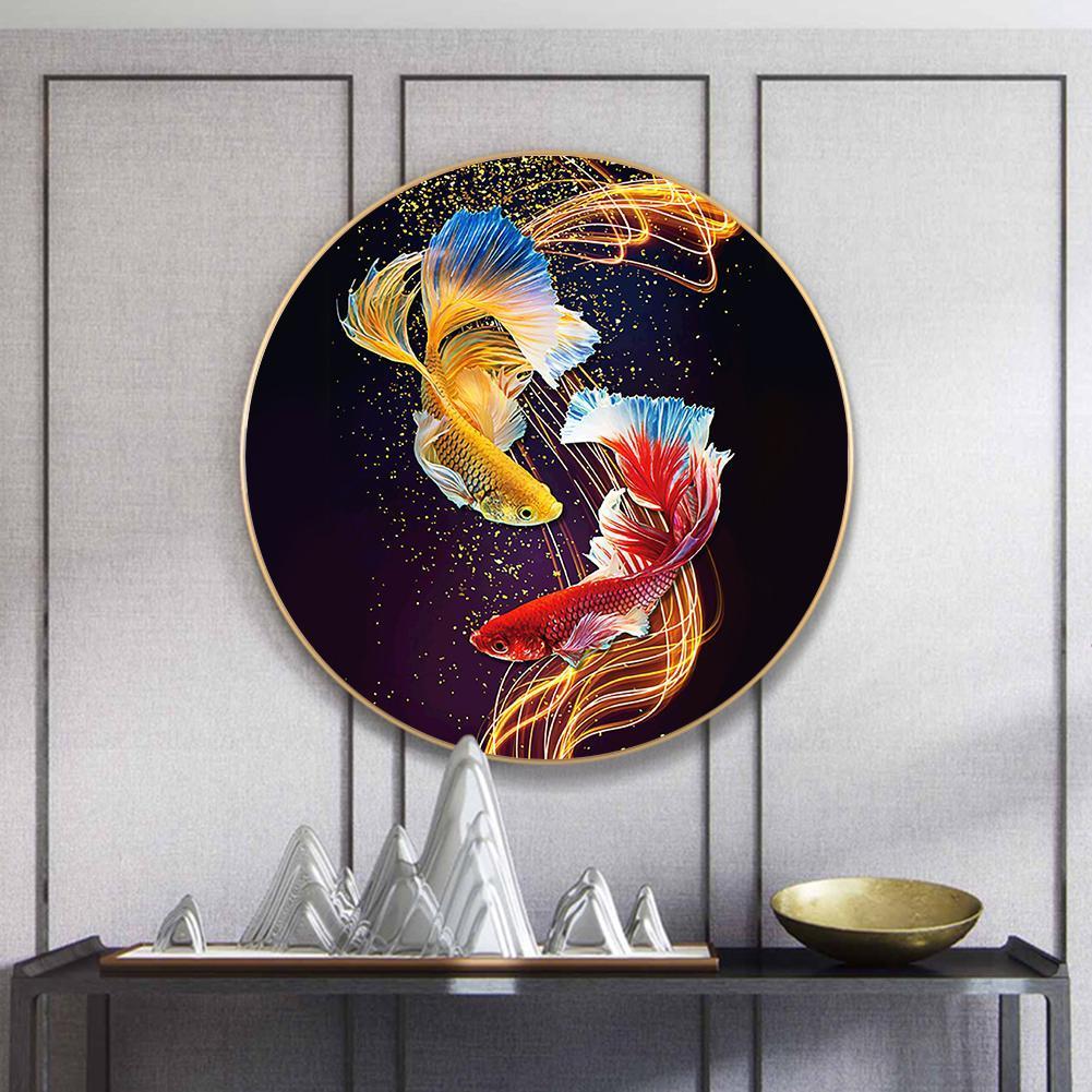 5D Full Round Drill Diamond Painting Fish DIY Cross Stitch Wall Art Broderie Strassstone Art Picture for Christmas Needlework Gift Home Decor