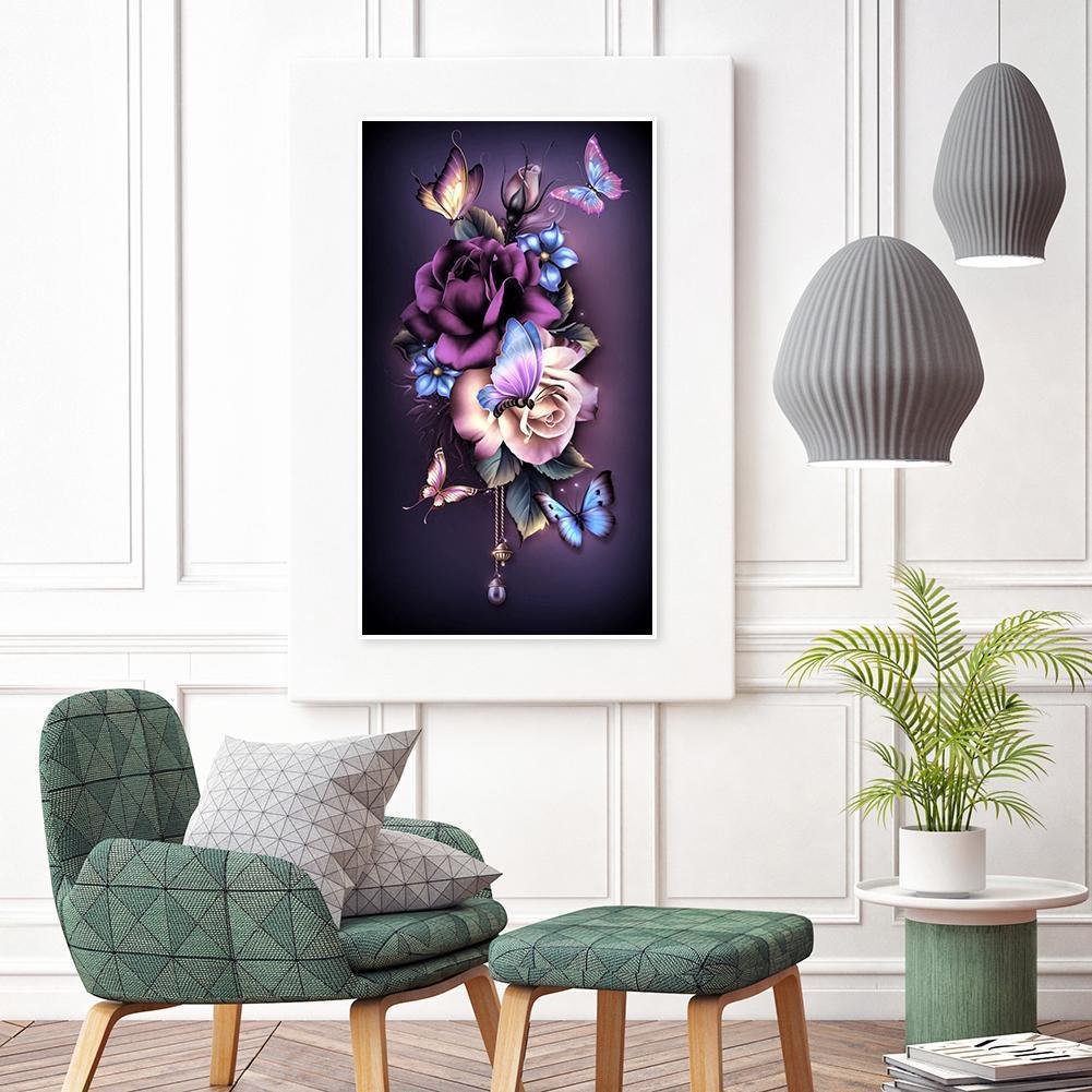 Papillon de fleur - diamant rond complet - 30x48cm