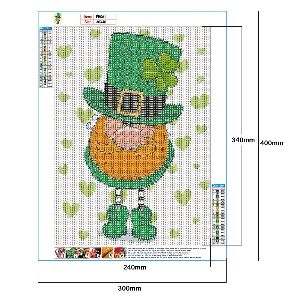5D DIY Full Round Drill Diamond Painting Green Hat Gnome Mosaic Kit Rhinestone Drawing Picture Home Decoration Art Craft