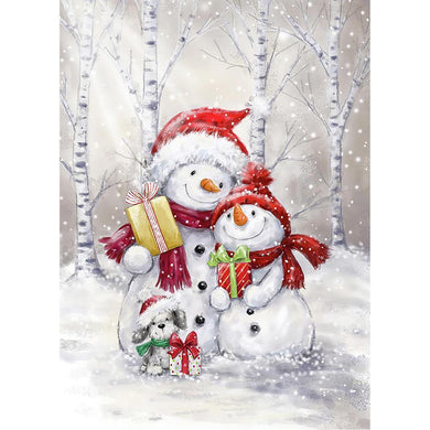 Couples de bonhomme de neige - peinture complète de diamant - 30x30cm
