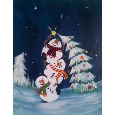 Bonhomme de neige - diamant rond complet - 40x30cm